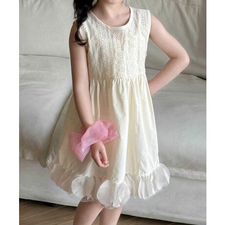 繊細なレースとふんわり広がるスカートが可愛らしい、ノースリーブワンピース。裾には花びらのような立体感のあるチュールがあしらわれ、特別感のあるデザインに仕上がっています。