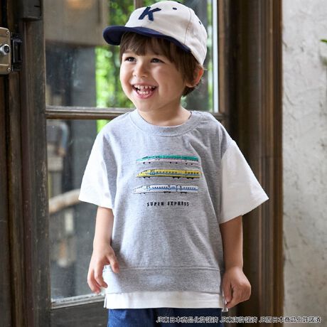 フロントに並んださまざまな新幹線が個性的な印象を与えるTシャツです。
