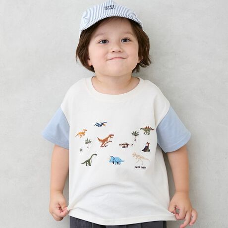 さまざまな恐竜の刺しゅうが可愛らしい半袖Tシャツです。