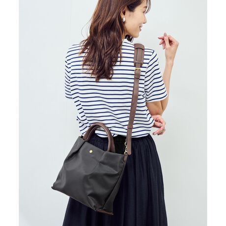 ・クシュッと寄せたタックがデザインポイントの、ショルダーストラップ付き2WAYトートバッグ。