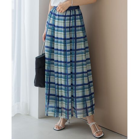 手書き風のチェックプリントによるギャザースカート。透け感のあるシアー素材にギャザーをつけることで、生地の分量がありながらもごわつかず、軽快に着用していただけます。配色の切り替えデザインになっているウエスト部分は、ゴム仕様ですが前側はすっきりとフラットに仕上げることで、トップスの裾をインしてもきちんとした着こなしが可能です。カラーはトレンドカラーのブラウンチェック(#335)、清涼感のあるブルーチェック(#374)の2色展開です。