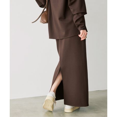 滑らかで柔らかい風合いのソフトポンチ素材を使用したスカート。