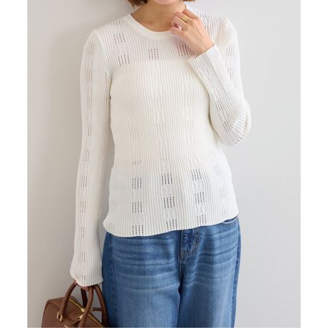 フラワーアイレットリブニットトップス