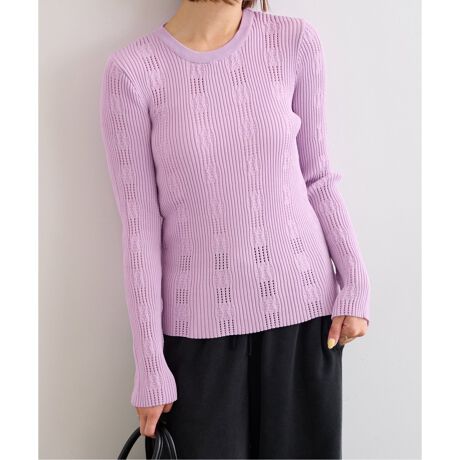 フラワーアイレットリブニットトップス