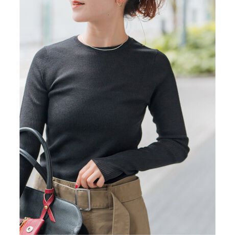 ドライタッチのさらっとした肌ざわりが心地よい、シアー感のあるリブニットプルオーバー。
