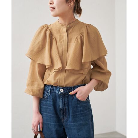 袖を上げるとランタンスリーブのようなシルエットになり袖のフリルとのバランスを楽しめます。