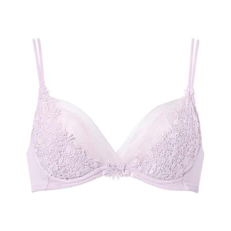●軽やかなつけごこち前中心の低いL字ワイヤーを使用しフロント部分の圧迫が少なくバックのしめつけも少ない軽やかな着用感脇上辺・バックには伸びのよいストレッチテープを使用●自然なまるみのシルエット前中心を低くし、サイドには薄く伸びない素材を使うことでほどよい脇寄せ効果。自然でまるみのある胸もとシルエットに●すっきりしたバックシルエットバックはチュールパワーネットの折り返し始末とラッセルレースで背中の段差を軽減。美しさと機能性を兼ね備えたデザイン胸もとに使用した透け感のあるチュールが、軽やかなスタイルを叶えるブラジャー。カップにあしらった繊細なケミカルレースは、可憐な小花とリーフがモチーフ。やさしいタッチで描き、ノスタルジックな雰囲気に。立体感のあるケミカルレースとシアー素材のコントラストが引き立つ、ワントーンでまとめた上品なカラーリングもポイントです。