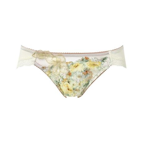 ●はきごこちがよいバックはやわらかく伸びるナイロンベア天竺素材で、はきごこちがよい「リボンブラ 胸もとフィットながもち (BXB490)」とペアコーデが楽しめるショーツ。あさめのはきこみ丈で、すっきりとした印象。ラナンキュラスの花を描いたアップリケが晴れやかな魅力を放つデザインです。