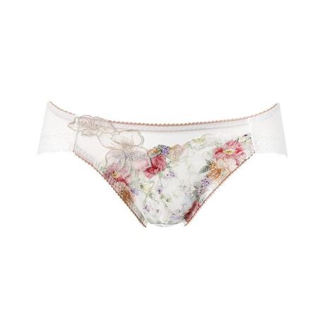 ●はきごこちがよいバックはやわらかく伸びるナイロンベア天竺素材で、はきごこちがよい「リボンブラ 胸もとフィットながもち (BXB490)」とペアコーデが楽しめるショーツ。あさめのはきこみ丈で、すっきりとした印象。ラナンキュラスの花を描いたアップリケが晴れやかな魅力を放つデザインです。