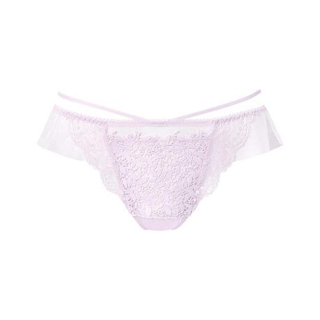 [型番:PXD418]・フロントは裏打ち付きで透けにくい可憐な小花とリーフを描いた、ノスタルジックな雰囲気のケミカルレースが美しいTバックショーツ。脚まわりにはラッセルレースで華やかさをプラス。サイドからバックにかけてのフリルがふわりと揺れる軽やかなデザイン。ウエストの華奢なループ使いもポイントです。