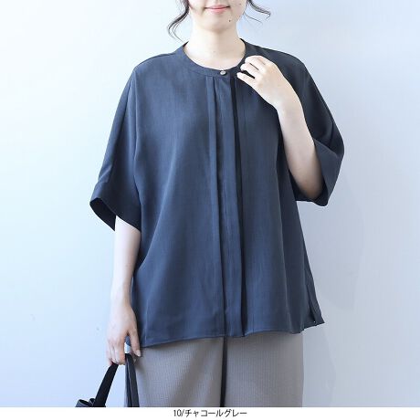 接触冷感で涼しく、きちんと見えも叶える、大人のためのサマーブラウスです。