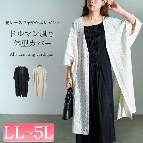 【大きいサイズ】 総レースロングカーディガン 大きいサイズ レディース アウター カーディガン 夏服