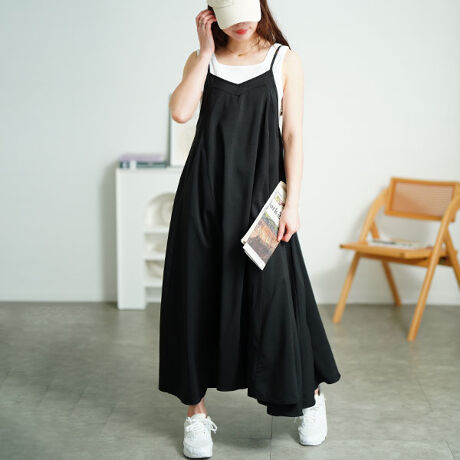 キャミソールの肩紐が華奢見え効果を発揮し、レイヤードスタイルを盛り上げるキャミワンピ。シンプルだからコーデを選ばず、カジュアルから綺麗めまで幅広いスタイリングにマッチします。背中にギャザーリボンがデザインされ、バックシルエットも抜かりの無い印象に。立体切り替えのスカートでたっぷりと生地を使用し、落ち感のある上品なフレアシルエットでしっかり体型カバーに。背中のドロストで肩紐とアームホールの広さを調節できるから、お好みのスタイリングに仕上がります。大胆に背中が開いたデザインですっきりとした印象に。
