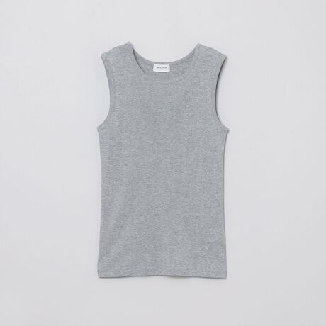 ほどよい光沢のラメ素材を使用したベーシックなタンクトップ。