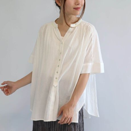 毎年大人気の軽やかな綿ボイル生地を贅沢に使用したギャザーワイドブラウス。