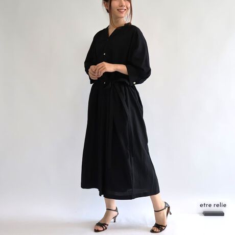 シボ感が夏らしく肌離れのよい素材でドルマンスリーブのワンピースを仕立てました。