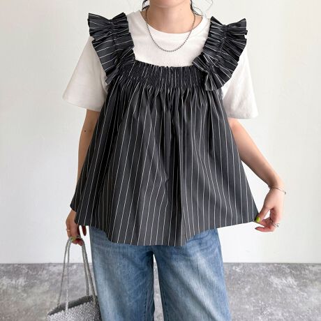 マルチウェイストライプノースリーブブラウス