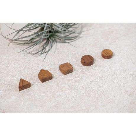 【アクセントになるインテリア】キッチンやリビングなどで大活躍。「Magnet shape 5個入り」。【形状の異なる5つのマグネット】石ころのイメージやお家のカタチ、多角形など。異なる5種類がセットに!【ナチュラルで温かみのある風合い】木目の美しいチーク材を使用。塗膜が薄く、本来の質感を活かしたラッカー仕上げ。【さりげばくおしゃれ感をプラス】冷蔵庫や伝言板に貼るメモを、ピタッと貼り付け。生活感を出さず、空間に素敵にマッチ◎