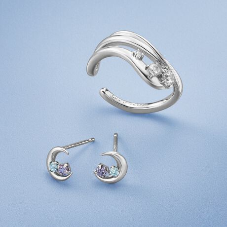 夏の夜空を照らす月をモチーフにしたピアスと、流れ星をイメージしたカフリングセット。