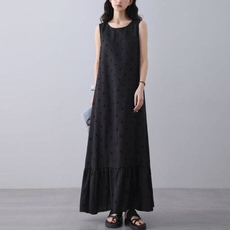 ドットデザインフレアノースリーブワンピース