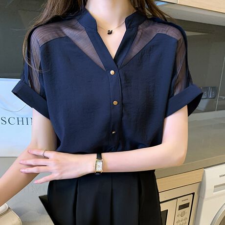 上品な透け感が大人の女性らしさを演出する、シアー素材ブラウス。