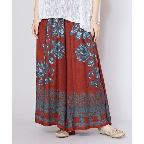 [型番:IAC-5226-2025]レーヨン素材ならではの落ち感と表面感が魅力的なパンツ。トルコのタイルから着想を得たオリエンタルなロータス柄デザイン。ワイドパンツでどんなトップスを合わせても決まる一押しアイテム。嬉しいサイドポケット付き。