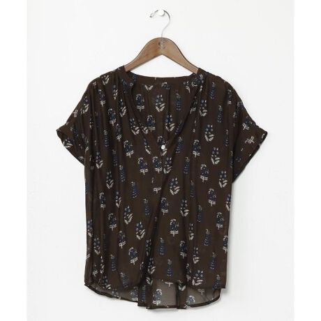 [型番:IKH-5202-2025]インド、ジャイプールの伝統技法から生まれたバグルー柄を模したスクリーンプリントトップス。光沢感のあるキュプラレーヨン素材で、思わず着たくなるとろみのある肌触り。ゆったりとしたワイドシルエット。