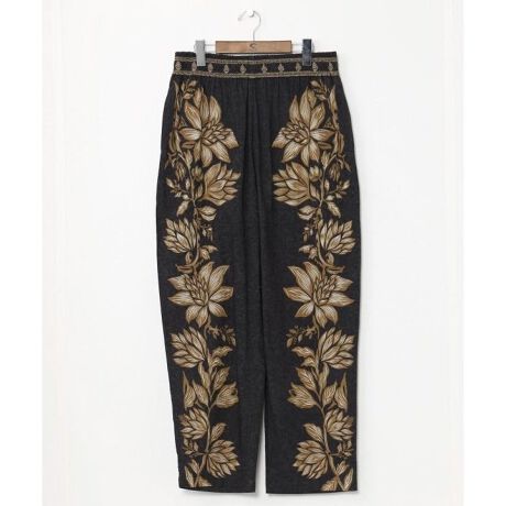 [型番:IAC-5228-2025]着心地の良いインド綿のメンズパンツ。トルコのタイルから着想を得たオリエンタルなロータス柄デザイン。ストレートシルエットでスマートな印象を与えてくれる。セットアップでのコーディネートもおすすめ。収納多めのサイドポケット、バックポケット付き。