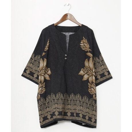 [型番:IAC-5227-2025]着心地の良いインド綿のメンズトップス。トルコのタイルから着想を得たオリエンタルなロータス柄デザイン。スッキリとした首回りとビッグシルエットでゆったり着用できる。嬉しいサイドポケット付き。