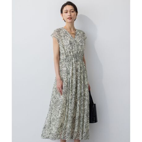 軽やかで涼し気な楊柳素材を生かしたデザインワンピース。モノトーンで描かれたフラワープリントが、シックな華やかさを演出します。タックやギャザーテクニックでやわらかな分量感を出しながら、ウエスト位置をやや高めにとることで、すっきりとしたシルエットに仕上げています。ウエストゴム仕様で着心地よく、また共布リボンを通すことでさりげなく女性らしいアクセントを加えています。両サイドスラッシュポケット付きです。シックな雰囲気のブラックベース(#505)と、爽やかな雰囲気のホワイトベース(#501)の2色展開です。
