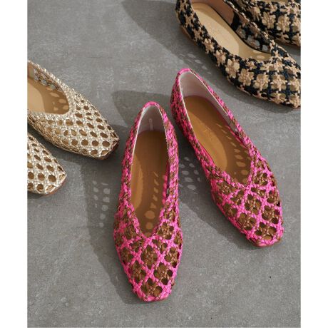 チェック柄のように見える編み方とスクエアトゥがこなれた印象で履ける1足に。