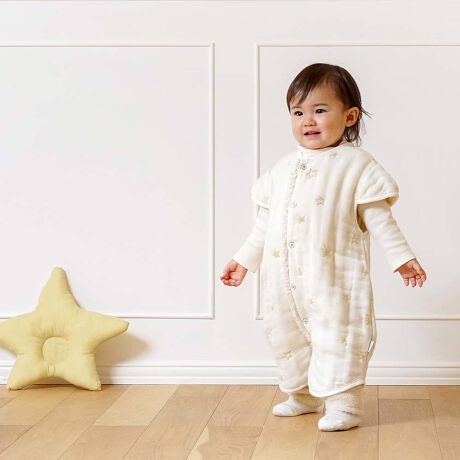 スリーパーを着せていても寝ぞうによっては、 スリーパーがめくれ上がってしまうというママの悩みを解消。 成長に合わせてドレス型にすれば長く使用することができます。 袖付きなので、赤ちゃんの小さな肩が冷えません。