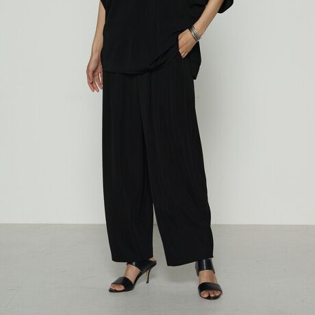 素材の落ち感とドレープ性の良さですっきり見えが秀逸です。