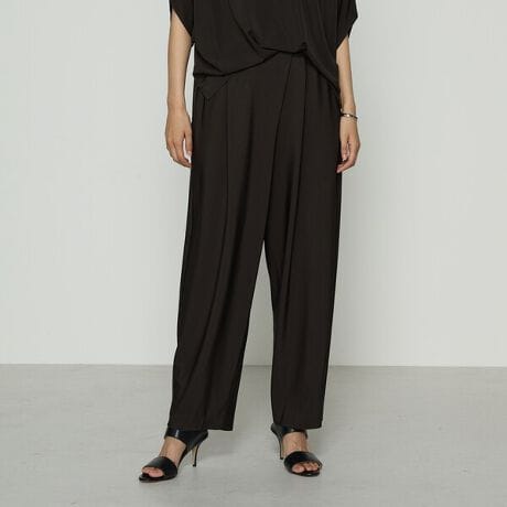 分量感がありながら裾にかけてテーパードしたバルーンタイプのタックパンツです。