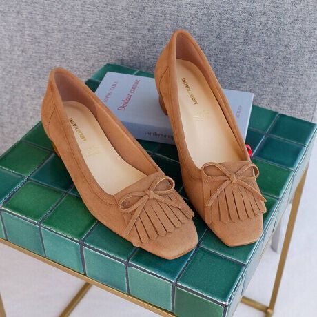 キルトタッセルとリボンの組み合わせが目を引くフェミニンなパンプス。