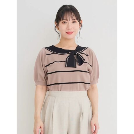 リボン×ボーダーが大人のマリンスタイルを演出するトップス