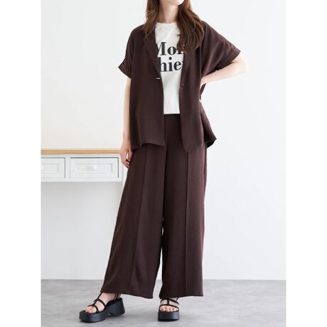 さらりとしたタッチで涼しく着られるジャケット×ワイドパンツの2点セット。