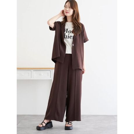 さらりとしたタッチで涼しく着られるジャケット×ワイドパンツの2点セット。