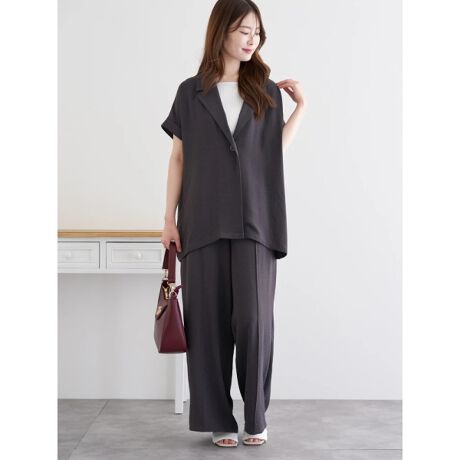 さらりとしたタッチで涼しく着られるジャケット×ワイドパンツの2点セット。