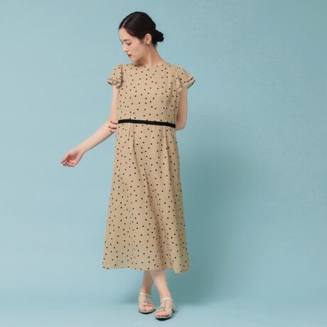 ウエストにグログランテープをたたき、女性らしいフィット&フレアシルエットにしています。
