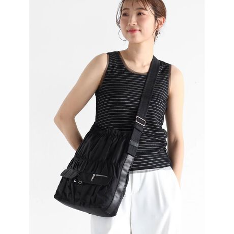 ランダムステッチで寄せられたギャザーデザインが、トレンドライクなショルダーバッグ。
