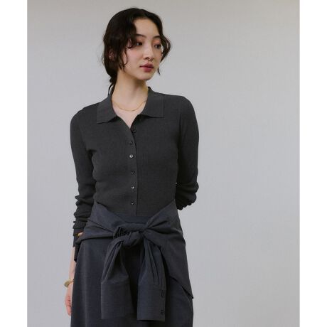 薄手で透け感のあるリブを採用することで、大人っぽく着用出来るポロニットカーディガン。