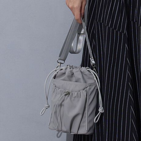 トレンド感のある巾着BAGは細部の合皮使いが高級感をプラスしてくれます。