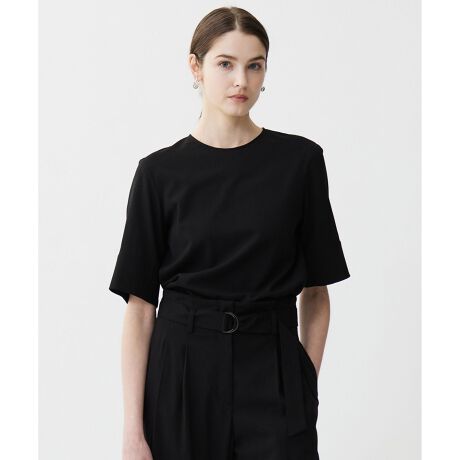 ■デザインブラウスのようなきちんと感と、Tシャツのラフさを兼ね備えたベーシックなTブラウスです。前後差の付いた深めのサイドスリット入りのデザインで、後ろのファスナーがポイントの一枚映えするアイテムに仕上げています。一枚でももちろん、同シリーズのワイドストレートパンツと合わせやすく、セットアップでの着用もおすすめです。