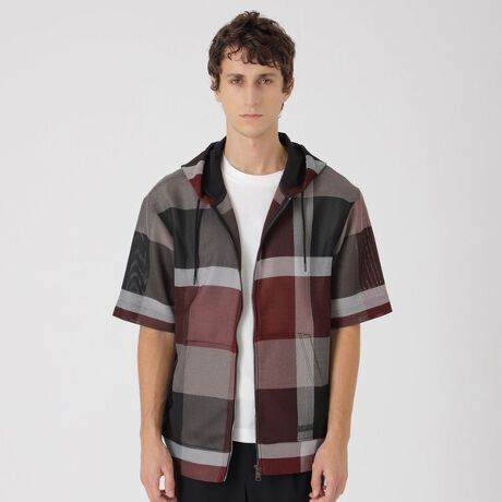全面にクレストブリッジチェック柄をあしらった半袖ジップアップパーカー。存在感ありながらも、程良いハリ感により上品なテイストのパーカーに仕上がっています。光沢感あるファスナーなど細かな部分までこだわった一着です。