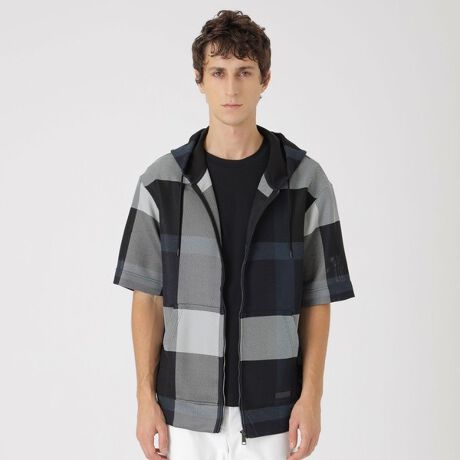 全面にクレストブリッジチェック柄をあしらった半袖ジップアップパーカー。存在感ありながらも、程良いハリ感により上品なテイストのパーカーに仕上がっています。光沢感あるファスナーなど細かな部分までこだわった一着です。