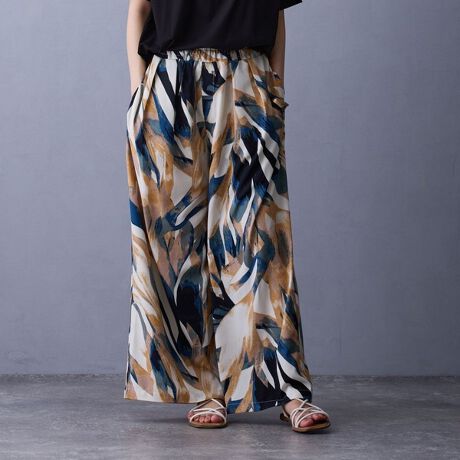 存在感のある柄なので、無地のトップスとの相性◎Tシャツなどをあわせてもカジュアルすぎずこなれ感のある印象になります。