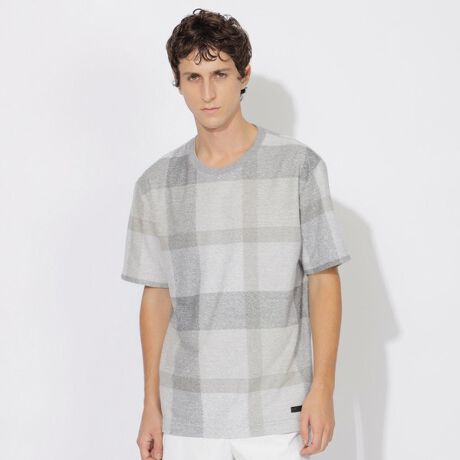 【清涼感溢れるパイル生地のチェック柄Tシャツ】
