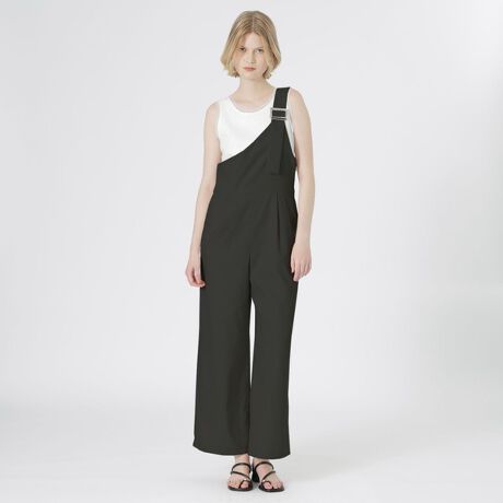 カジュアルにもモードにも変化する、アシンメトリーのデザインサロペット