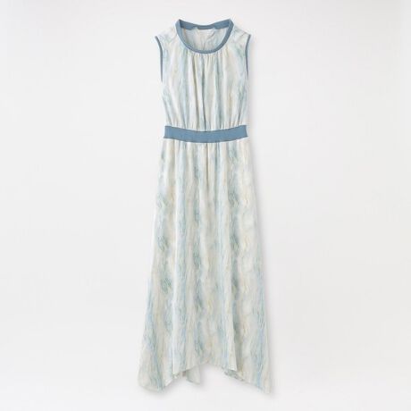 ニュアンス柄とハンカチーフヘムが揺らめく、コンビノースリーブドレス